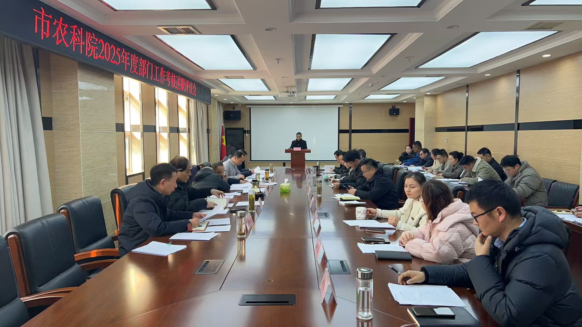 会议严格按照既定议程推进,院属各部门围绕2025年度履职情况、工作亮点、科研成果及存在的问题作述职报告,评委组根据各部门述职情况现场评分,院纪委全程监督考评过程,确保规范透明。