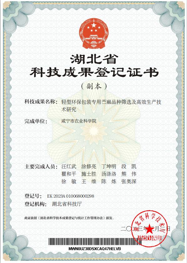 轻型环保包装专用苎麻品种筛选及高效生产技术研究