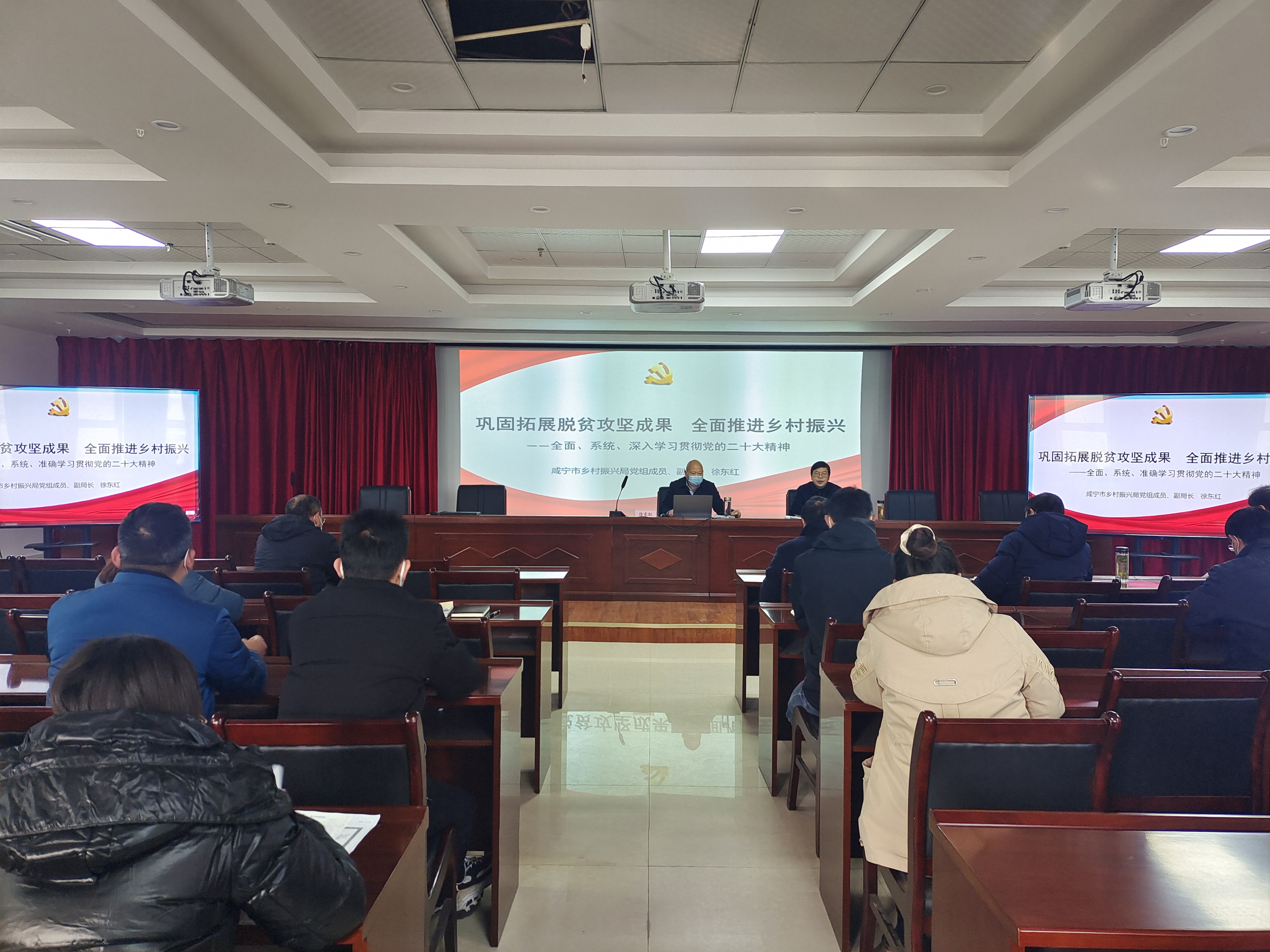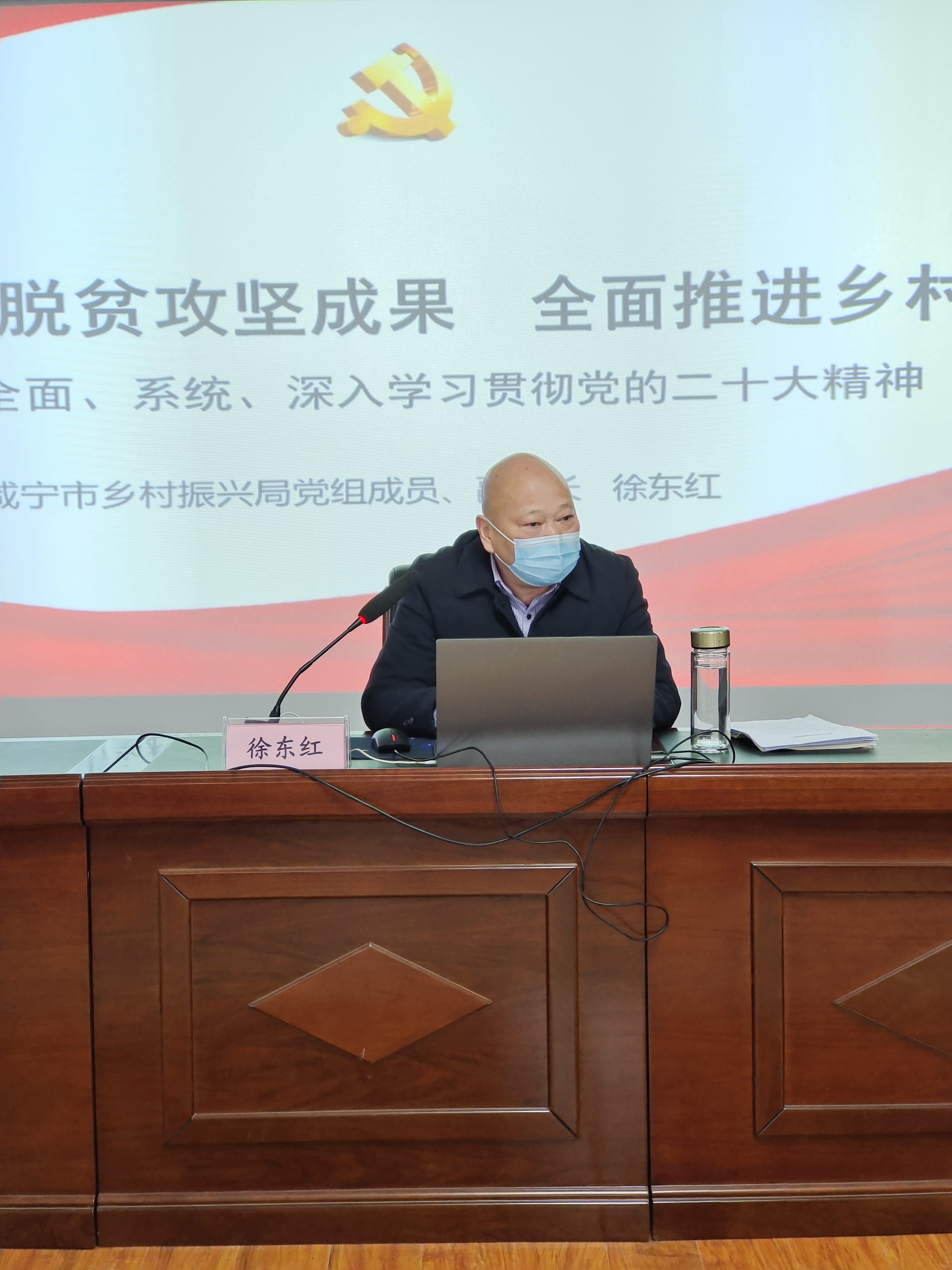 12月2日上午,学习贯彻党的二十大精神市委宣讲团成员,市乡村振兴局党组成员、副局长徐东红走进我院,为全院干部职工宣讲党的二十大精神。会议由党委书记余安安主持。