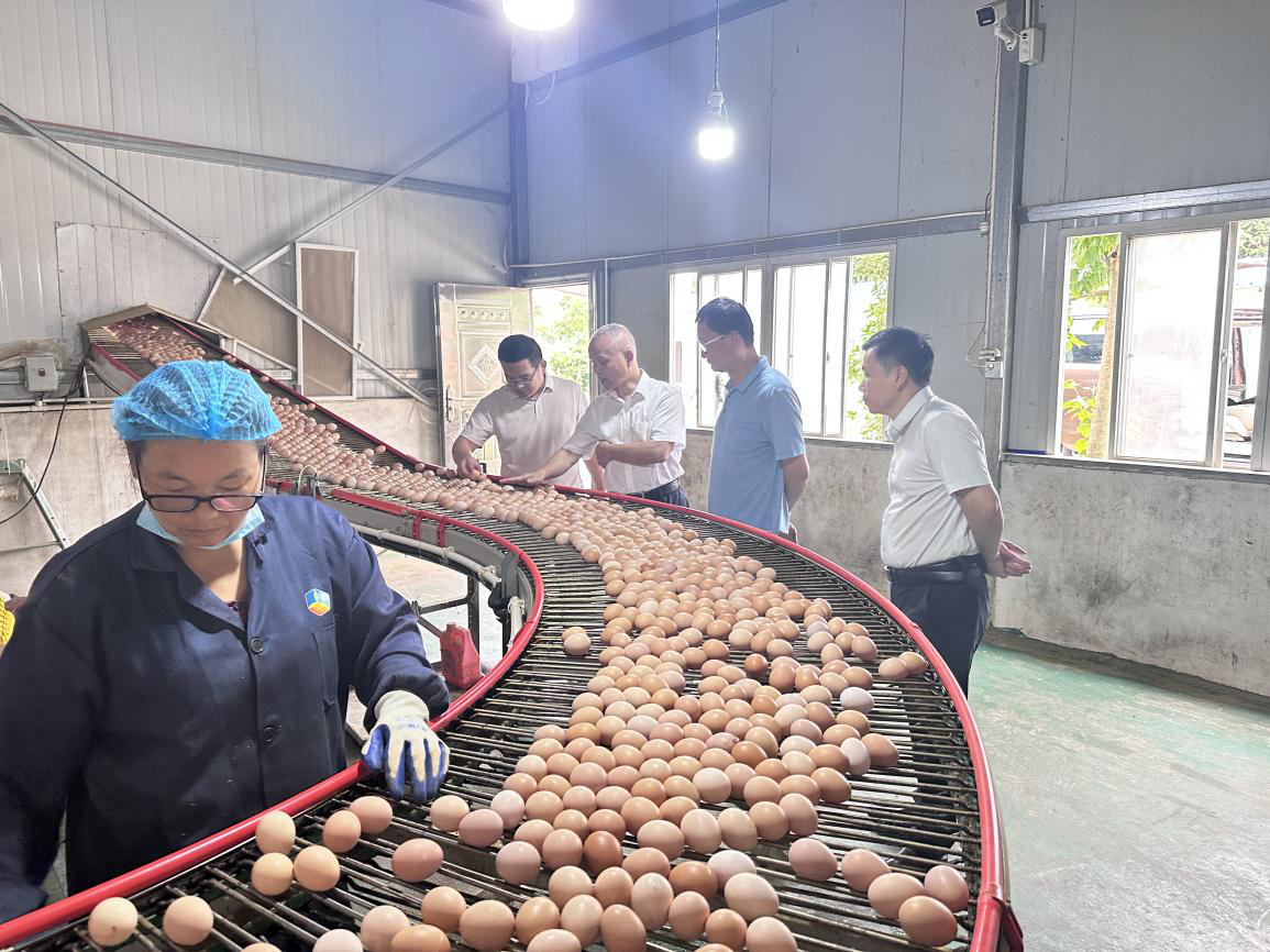 在咸宁市宏盛农业发展公司,瞿和平深入查看了新建的现代化蛋鸡养殖场舍,并进入鸡蛋分拣车间查看了相关设备,详细询问了企业在蛋鸡品种选育、饲料营养配比、生物安全防控、蛋品品质提升以及市场销售等方面存在的技术瓶颈与挑战。